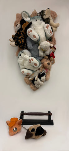 Using thrifted stuffed animals and other thrifted materials “A Child’s Defense” talks about protecting your childhood imagination, memories, and play. Using thrifted stuffed animals represents all the memories they hold from children's past and present and how they would use these in their fantasies. Starting out the shield is based off of a medieval kite shield with a wooden backing and stuffed animals on the front. The shield is crafted with visual appeal and practicality in mind so it is strong and sturdy on the back and soft and fluffy on the front.